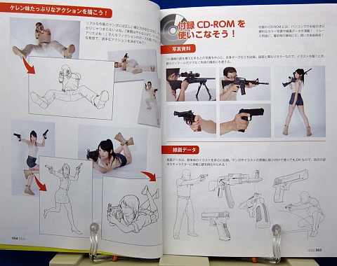銃をかっこよく描くためにはこの光沢のつけ方がとても大切です。 銃単体と、構えたポーズ、それぞれをさまざまな角度から観察できるので、これ1冊あればポーズには困りません。 イラスト制作の基礎知識、上達の方法、顔や背景の描き方など実践